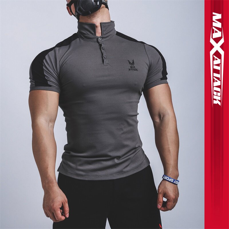 Muscle fitness clothes male dog brothers quick-dry short sleeve training tight T-shirt personal trainer uniforms sports polo shirt