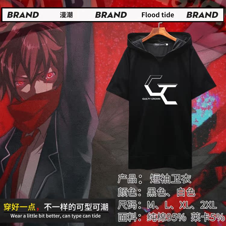 Chao Man Guilty Crown Qi Meiwei Clothes Sakura Manji Anime Pullover Short Sleeve Summer Autumn Men's Black and White Shirt