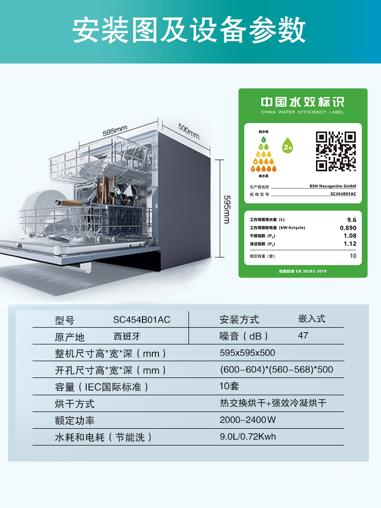 SIEMENS Siemens imported built-in household automatic dishwasher sterilization 10 sets SC454B01AC