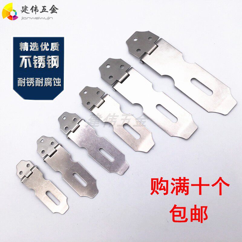 Stainless steel lock plate buckle fixed door nose buckle old padlock door bolt nose buckle wooden case drawer safety lock sheet