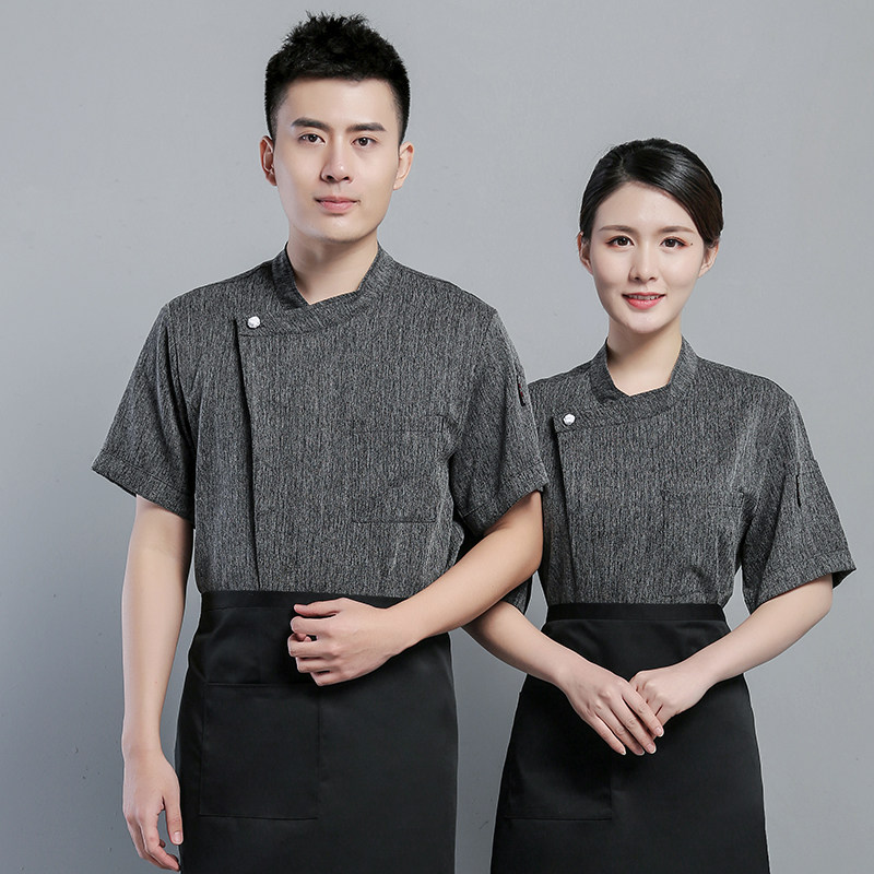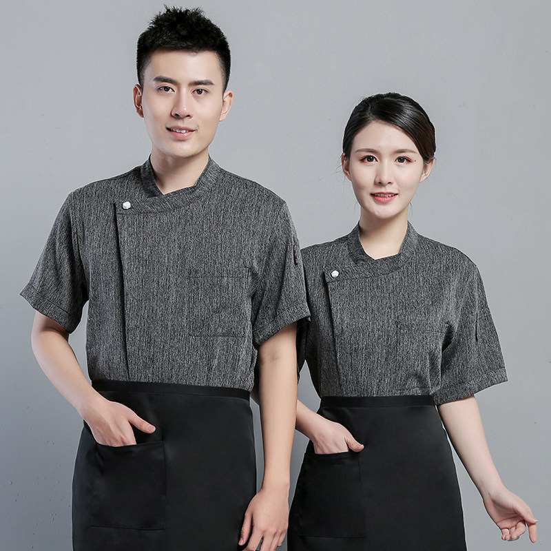 Cotton and linen hotel chef's clothing men's short sleeve summer high-grade breathable thin kitchen clothes chef chef