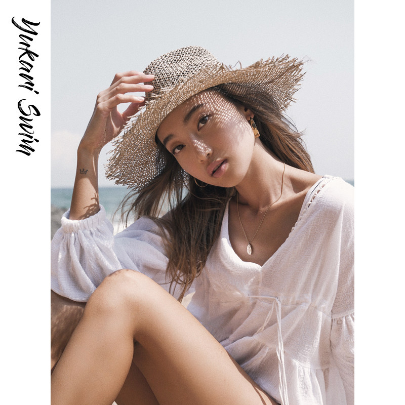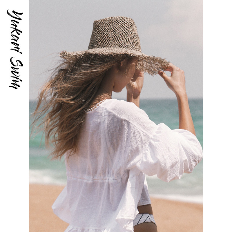 YUKARI Beach Straw Hat Women's Seaside Vacation Big Brim Sunshade Sunscreen Face Cover Hat Spring and Summer Sun Hat