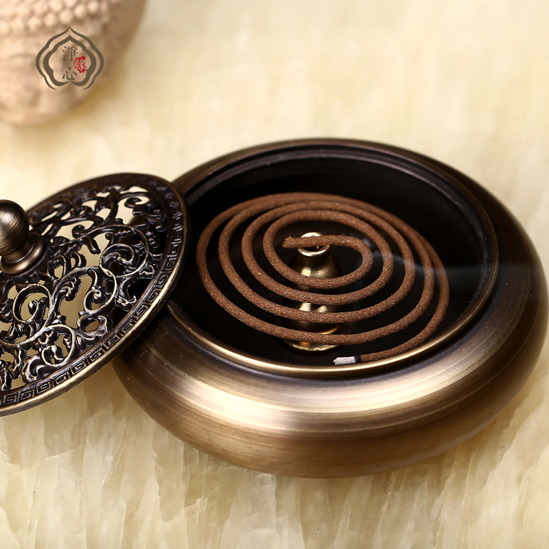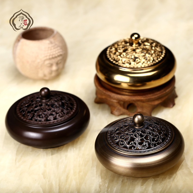 For the Buddha's incense stove pure bronze imitation ancient home sandalwood pan incense stove tea road mini-room Home Bronze Incense Burner
