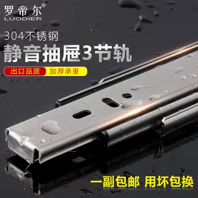 Drawer track 304 stainless steel thick mute garment integral cabinet slide hydraulic damping buffer three-section rail slide