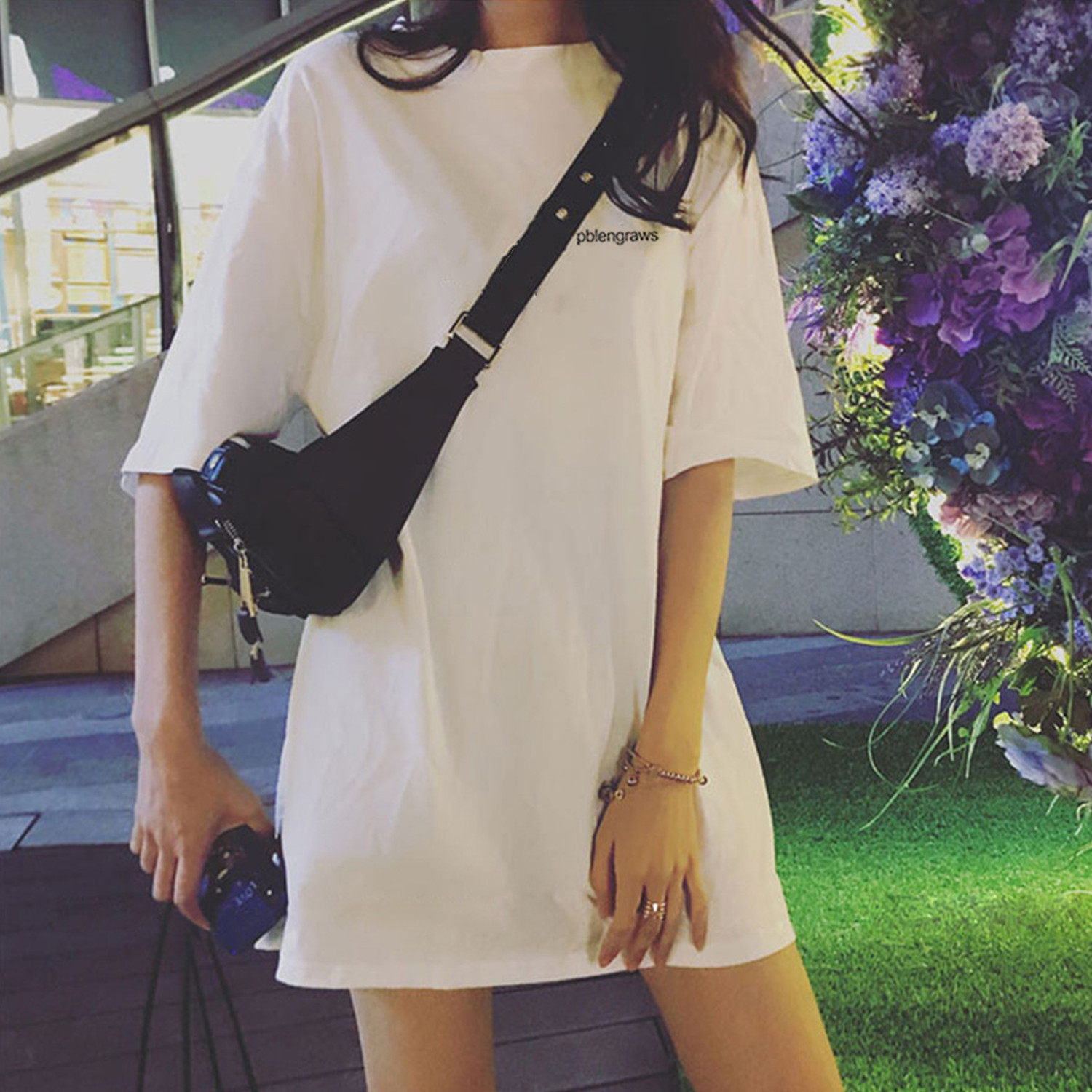 2022 Spring Summer New short sleeve T-shirt Women in loot medium Long version Korean version 100 hitch white pure cotton ins half sleeve blouse