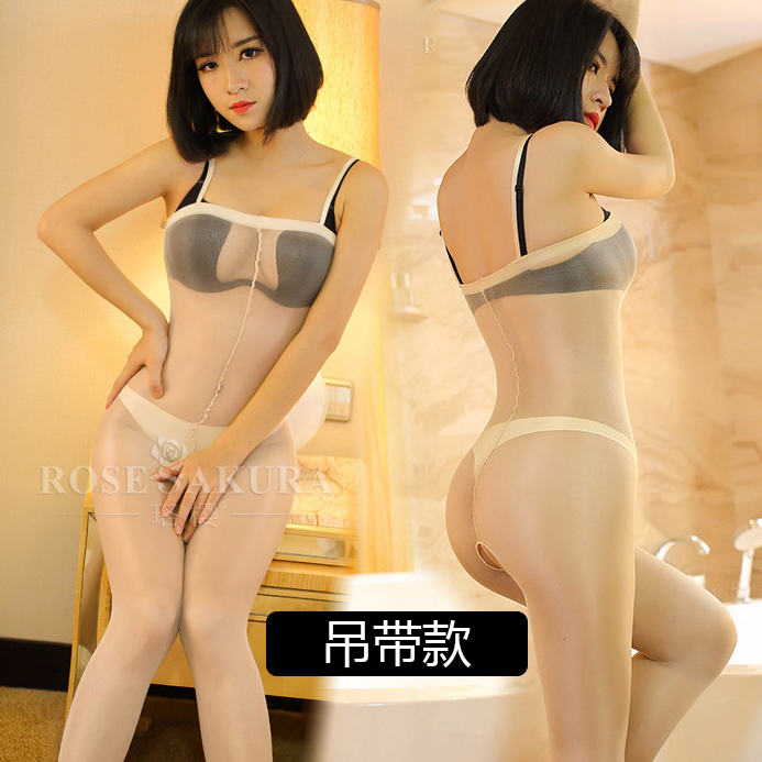 One-piece 0D free black and white suspender fun stockings Lace women's ultra-thin invisible tights toes transparent ice silk