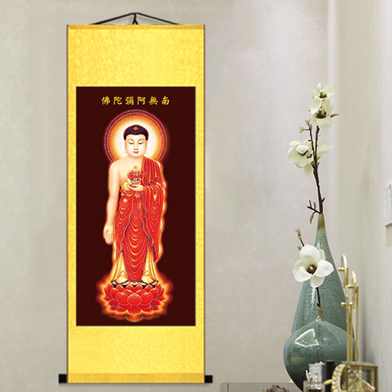 Namo Amitabha Buddha statue scroll hanging painting portrait Buddha hall Western three saints portraits dedicated to gods imitating diamond paintings