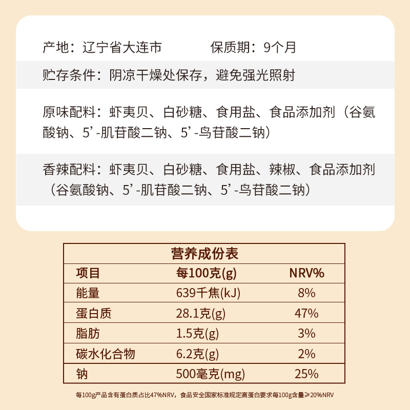 Original 100g (simple bag of 7-8 bags of 2-3 scallop meat per pack) Spicy 100g(simple bag of 7-8 bags of 2-3 scallop meat per pack) Original 20