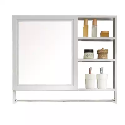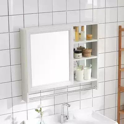 Space aluminum bathroom mirror cabinet mirror box powder room wall-mounted small apartment storage cabinet wood grain storage face mirror cabinet