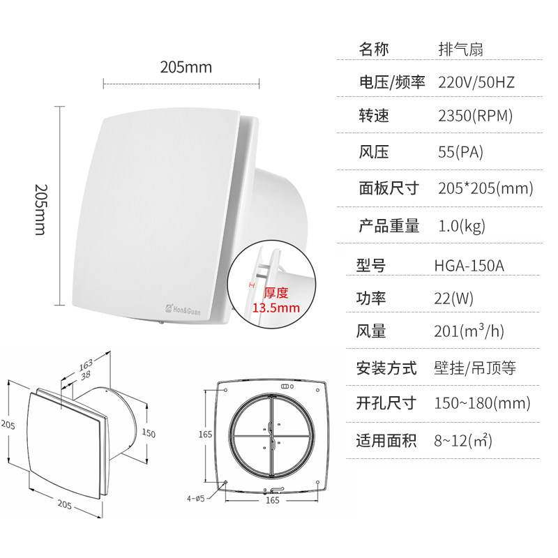 Hongguan silent bedroom exhaust fan 6 inch kitchen window smoking machine powder room powerful wall exhaust fan