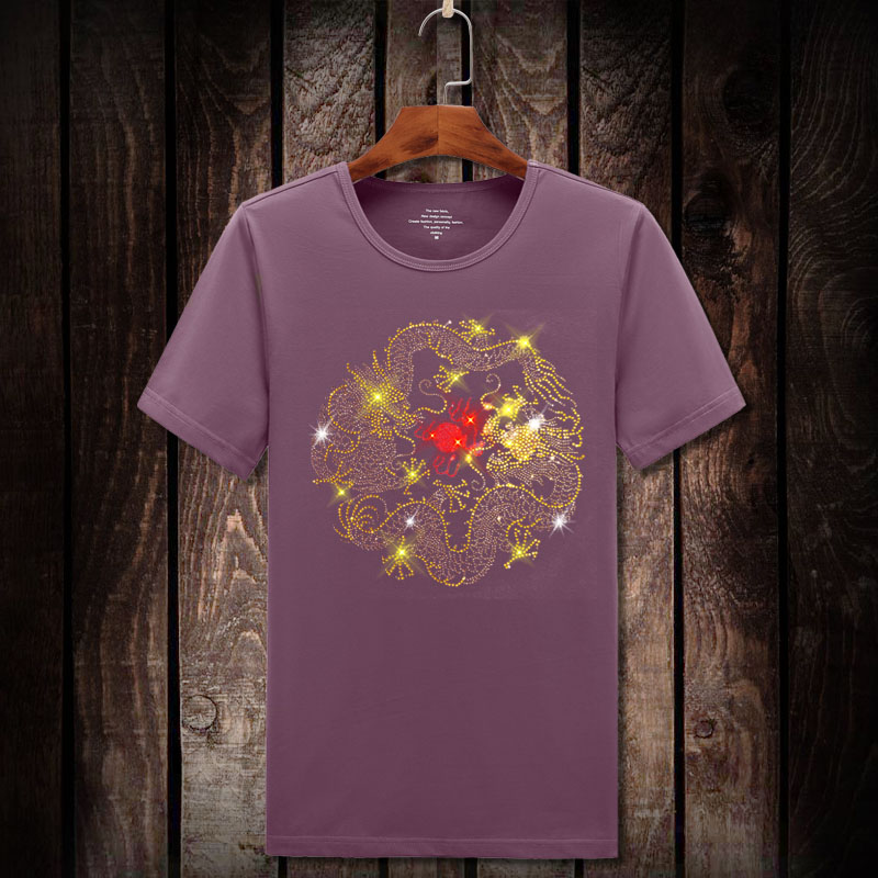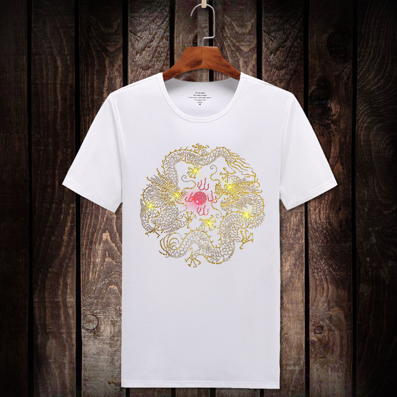 Summer Bronzed Drilling Country Tide Double Dragon China Wind Short Sleeve T-shirt Male Trend Clothes Manmade Semi-Sleeve T-shirt Pure Cotton Big Size