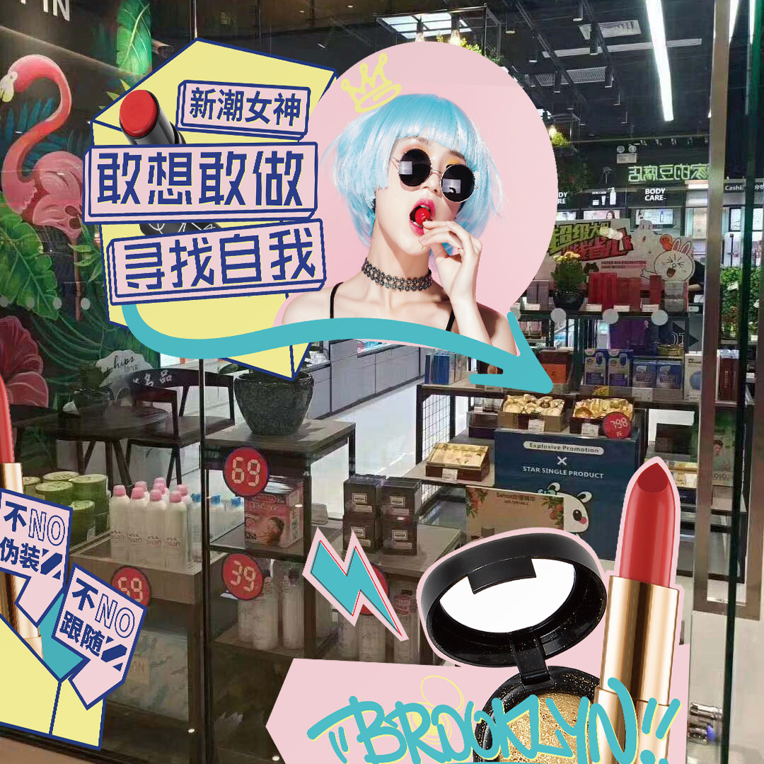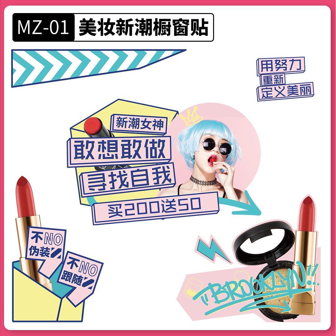 Cosmetics beauty shop new creative decoration window glass door paste atmosphere activities promotion paper pop-up visual marketing