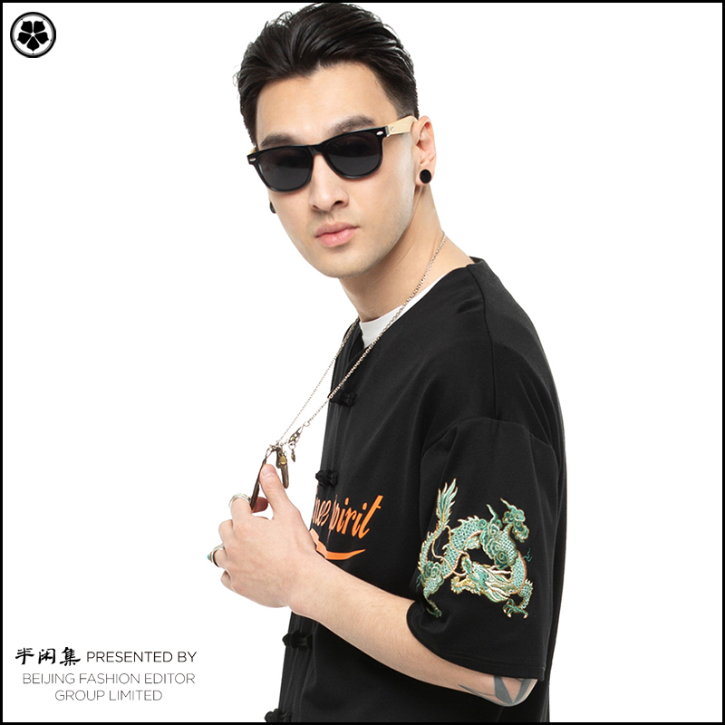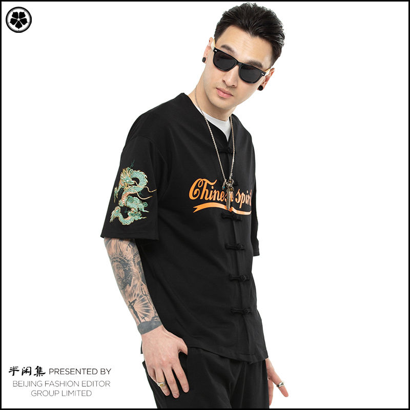 Half Idle Episode Baseball Dragon Embroidery Short Sleeves Tang Dress Hip Hop Fashion Tide Card Youth Retro Disc Button China Wind Menswear