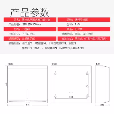 Powder room wall-mounted stainless steel toilet paper box Toilet toilet punch-free removable tissue box tissue holder