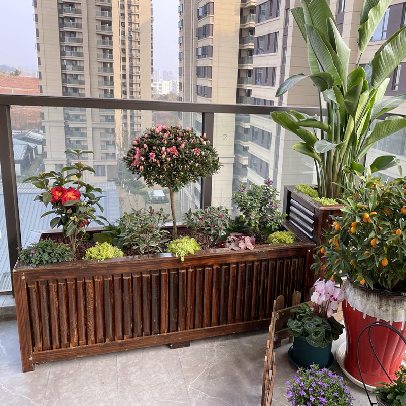 Anti-corrosion wood flower box outdoor garden rectangular planting box large wooden flower box outdoor balcony planting vegetable box flower pot