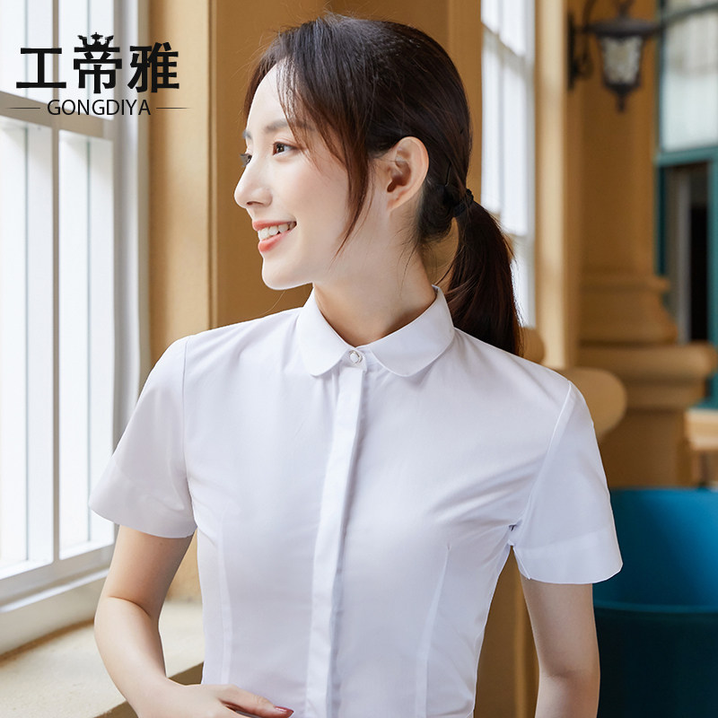 Gongdiya summer new round neck white short-sleeved shirt professional business overalls fashion temperament top shirt