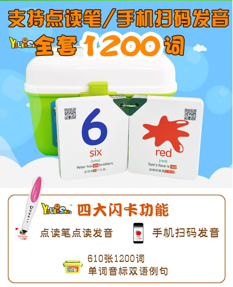 A set of 1200-word Chinese and English word cards 16g small master point reading pen 32g small master point reading pen