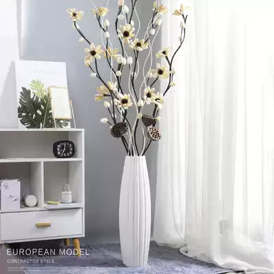 Starry floor-to-ceiling white vase large ceramic dried flower arrangement Nordic living room entrance modern simple high decoration