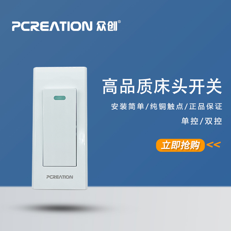 One position Single control Surface mounted bed head Open bed head button Wiring switch Wire control switch Wire control double cut intermediate switch
