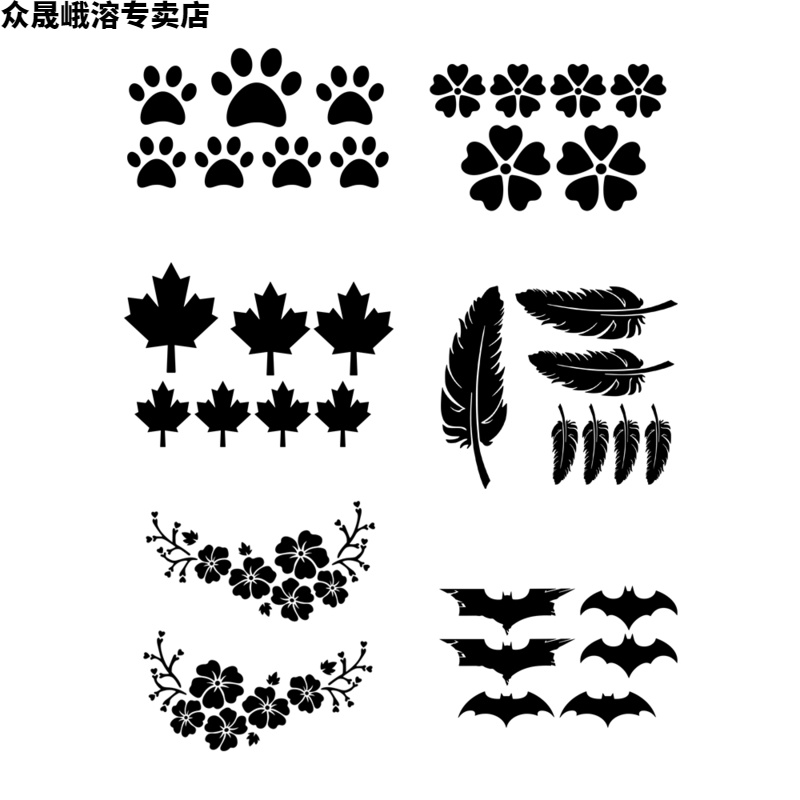 Feathers (Black)A set of feathers (blue) A set of (reflective) Feathers (yellow) A set of (Reflective) Feathers(silver white) A set of (Reflective) Feathers (Red) A set of (Reflective