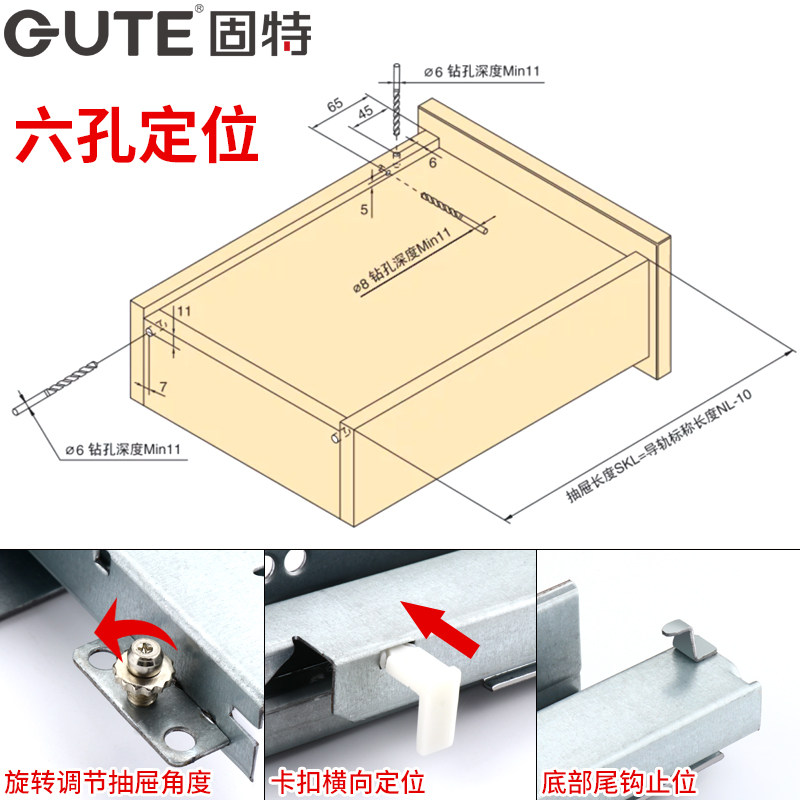 Goode presses the three-section overall cabinet rail to press the rebound drawer rail to thicken the furniture mute bottom hidden slide