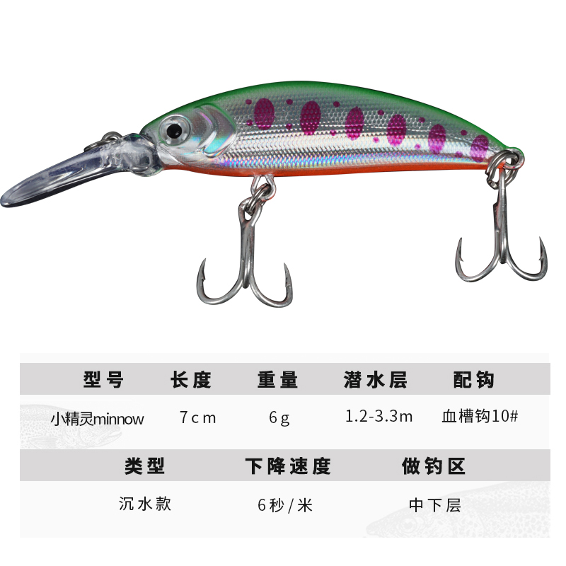Little genie minnow (6g) -01#黄绿色小精灵minnow(6g) -02#银绿色小精灵minnow(6g) -03#诱惑红