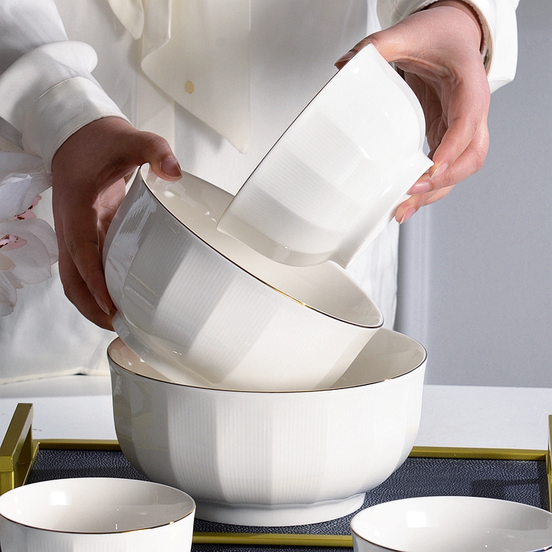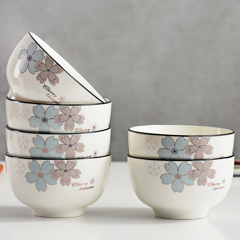 2022 New Bowl Household Eating Bowl 5 Inch 6 Inch Noodle Bowl Rice Bowl Thickened Ceramic Bowl Tableware Dish Set