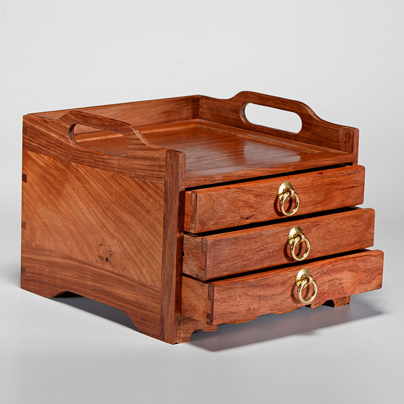 Myanmar Flowers Pear Double Ear Three Pumping Tea Box Red Wood Tea Cabinet Pu-erh Tea Cake Containing Box Chinese Small Tea Box