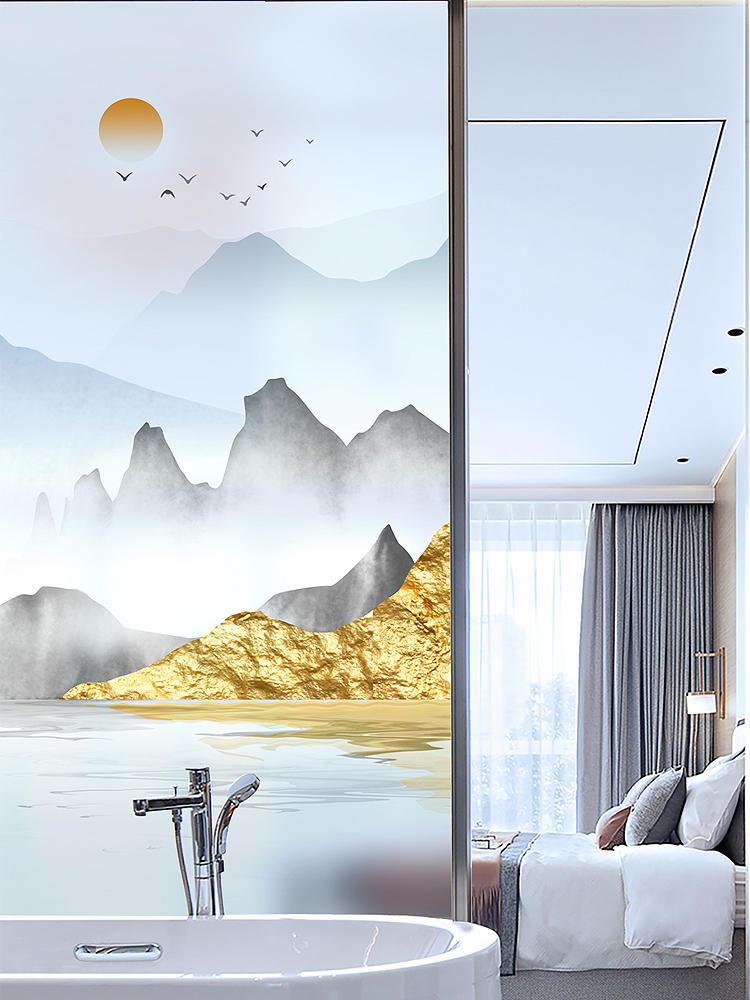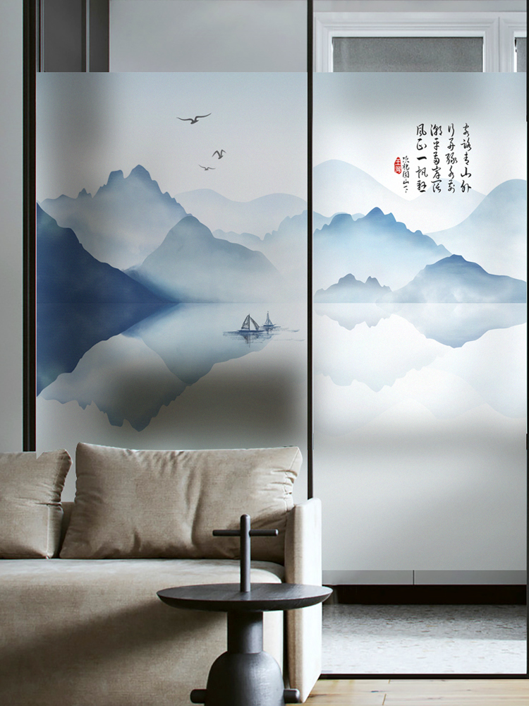 Frosted Glass Stickers Windows Privacy Electrostatic Film Glass Bathroom Ramen Sticker Anti-Peep Window Sticker Chinese Landscape