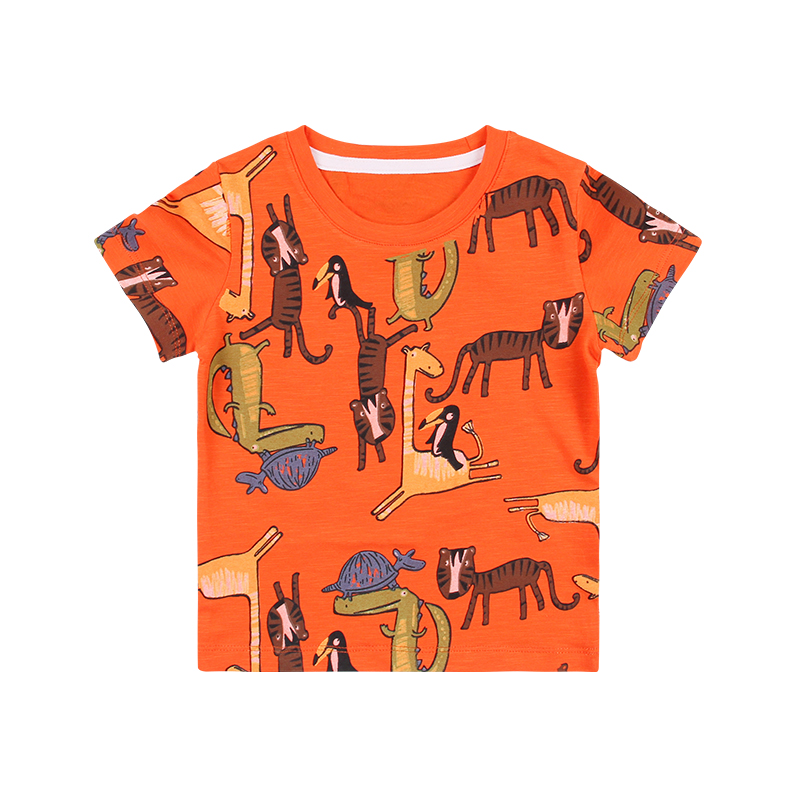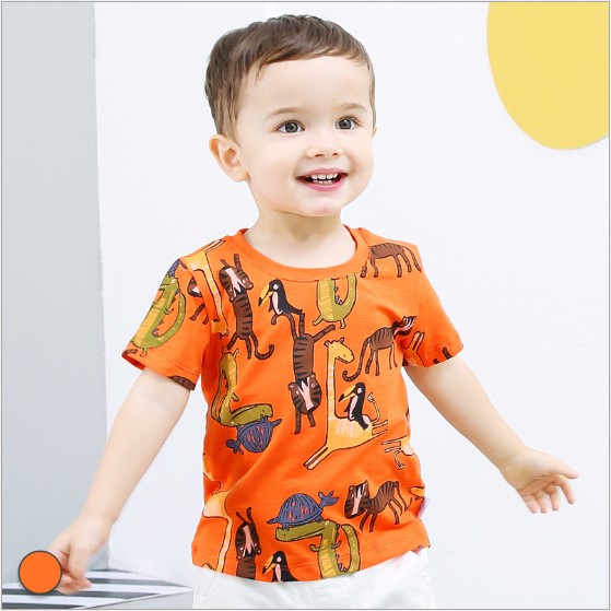Zero Also Brands 2019 Summer New Products Han Edition Boy Baby Pure Cotton Full-body Cartoon Printed Round Collar Short Sleeve T-shirt