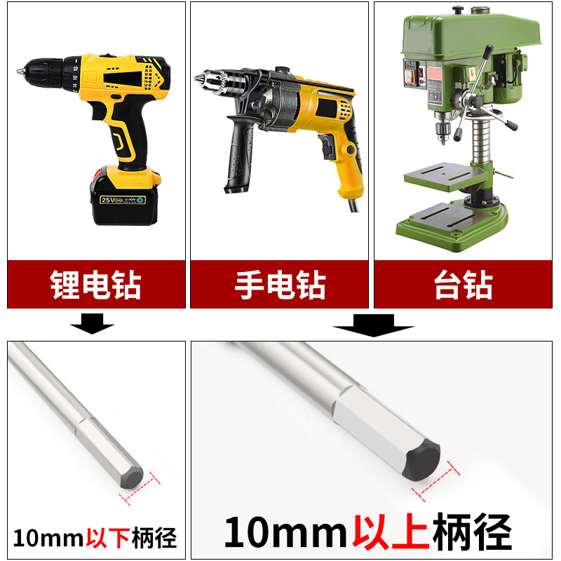 Lengthened woodwork branch Rodrilling four-edged four-edged woodwork drill door lock drawer drilled hole-hole drill-drill hexagonal shank