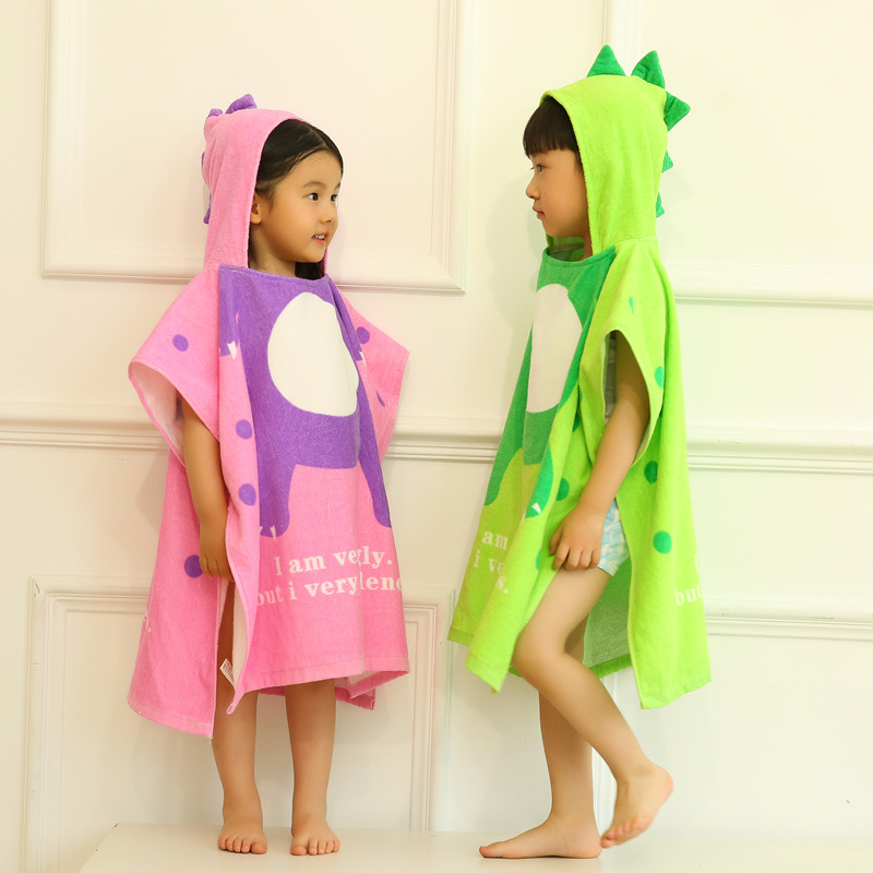 Printed cartoon children bath towels pure cotton towel material with cap cloak baby cloak beach towels bathrobe covered head bathing suit