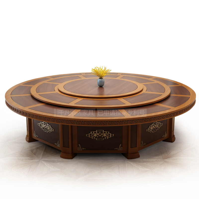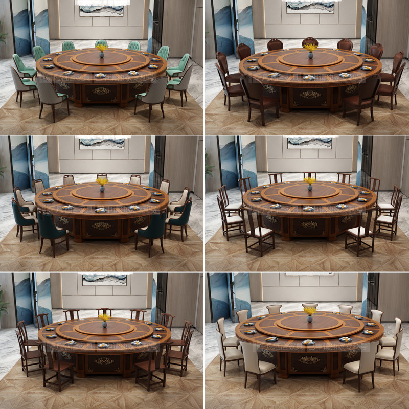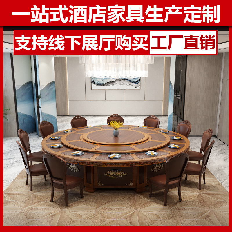 Hotel box Chinese-style electric big round table restaurant restaurant solid wood hot pot dining table and chairs automatic turntable round table 20 people
