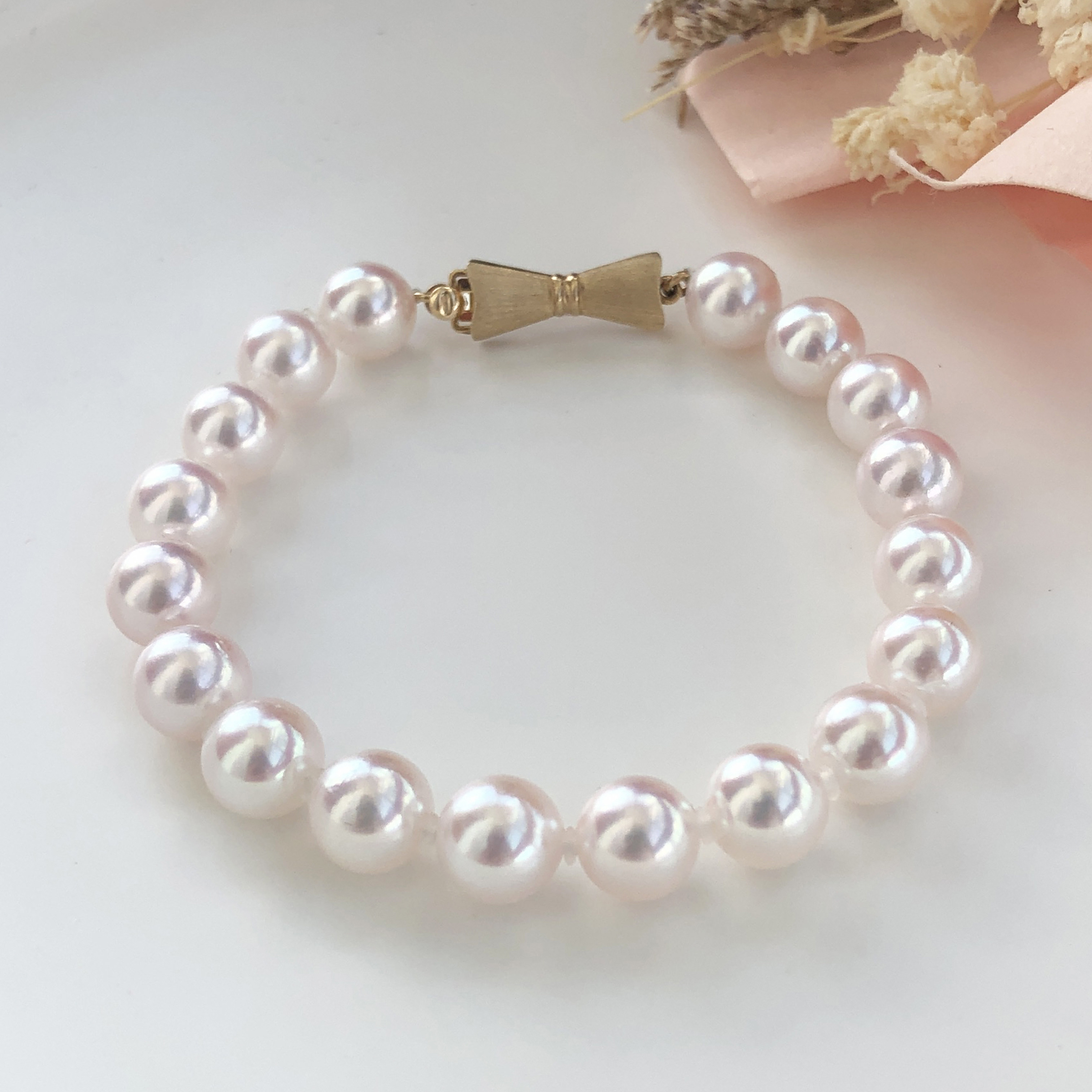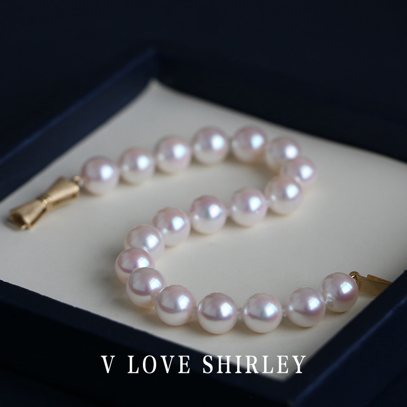 Akoya Pearl Bracelet 14K Gold Mirror Light Cherry Blossom Powder Seawater Pearl Bracelet Fashion Versatile