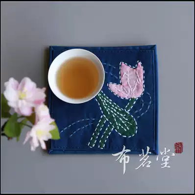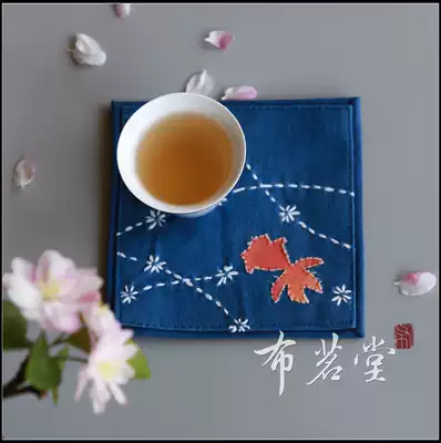 Cloth Mingtang handmade cloth stickers thorn embroidered cotton and linen coasters Plant blue dyed fabric coasters Tea mats