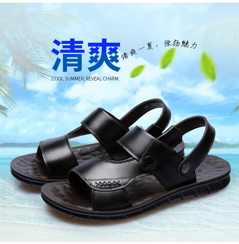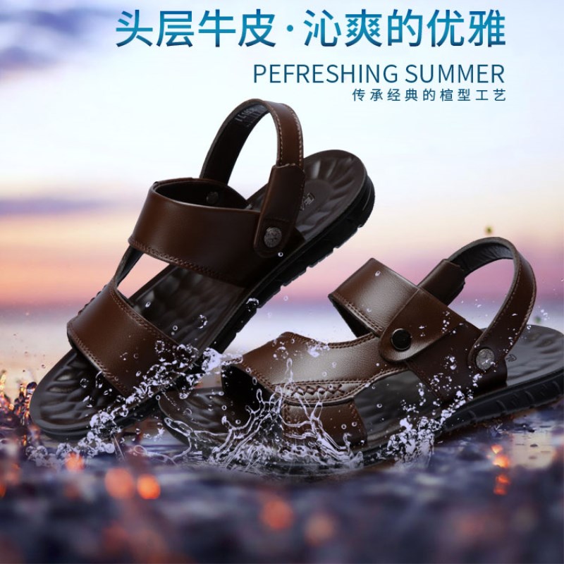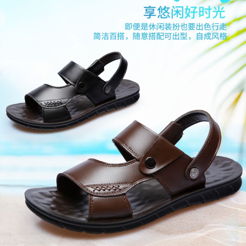 Slippers Men's Summer 2019 New Beach Shoes Non-slip Mid and Old Age Dual-use Soft Bottom Large Size Casual Genuine Leather Men Sandals