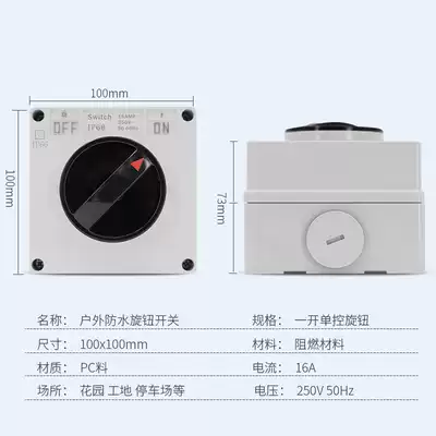Single-phase outdoor waterproof switch one-open double-cut outdoor rainproof knob switch kitchen garden wall switch