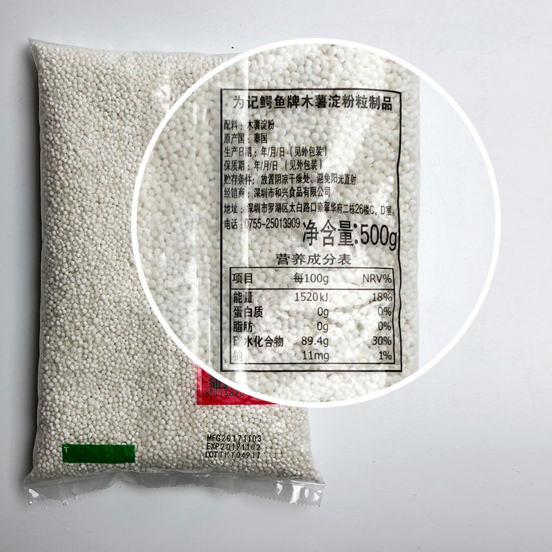 Thailand crocodile brand white sago 500g imported small sago poplar branch nectar coconut milk sago drink shop raw materials