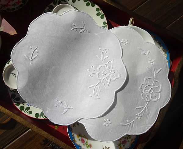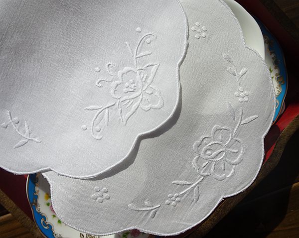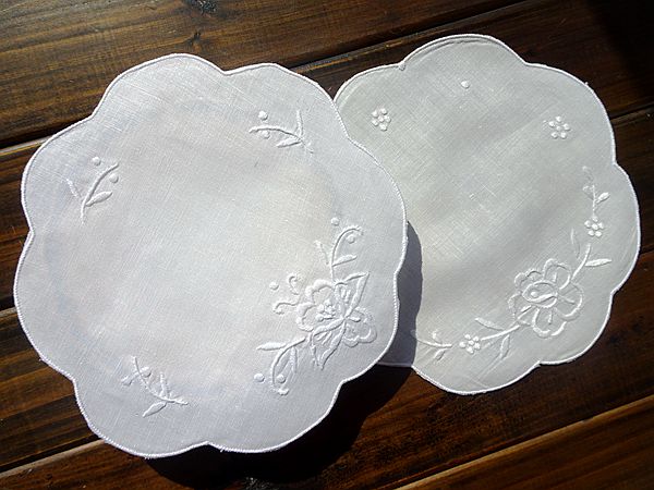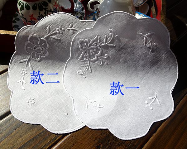 This white hand embroidered one piece about 19CM round this white hand embroidery two 1 piece about 19CM round