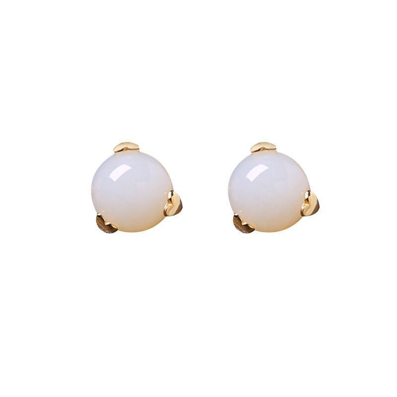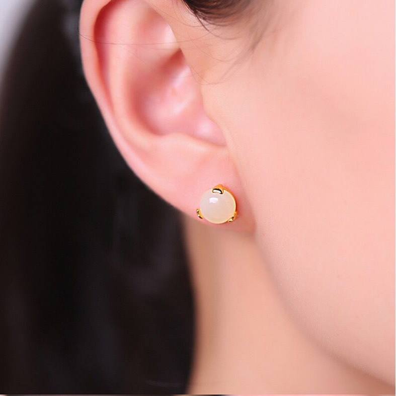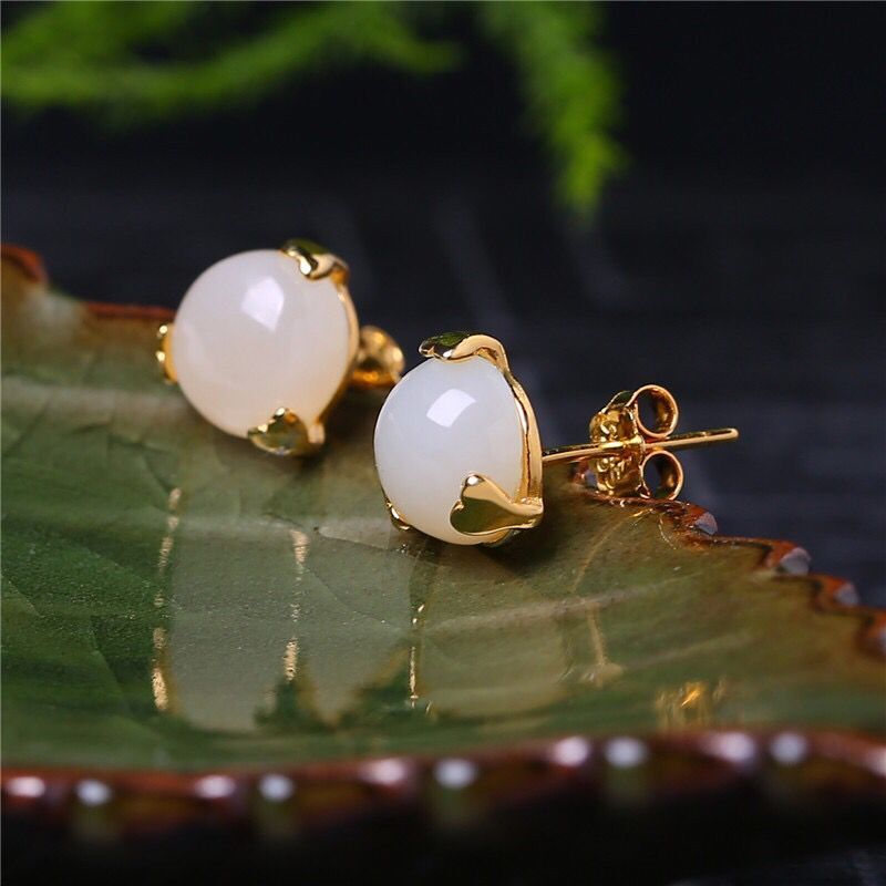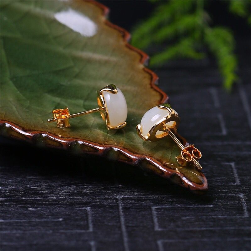 Xinxuan and natural fields white jade earring ear accessories S925 silver inlaid jade earrings earrings earrings in simple classic style