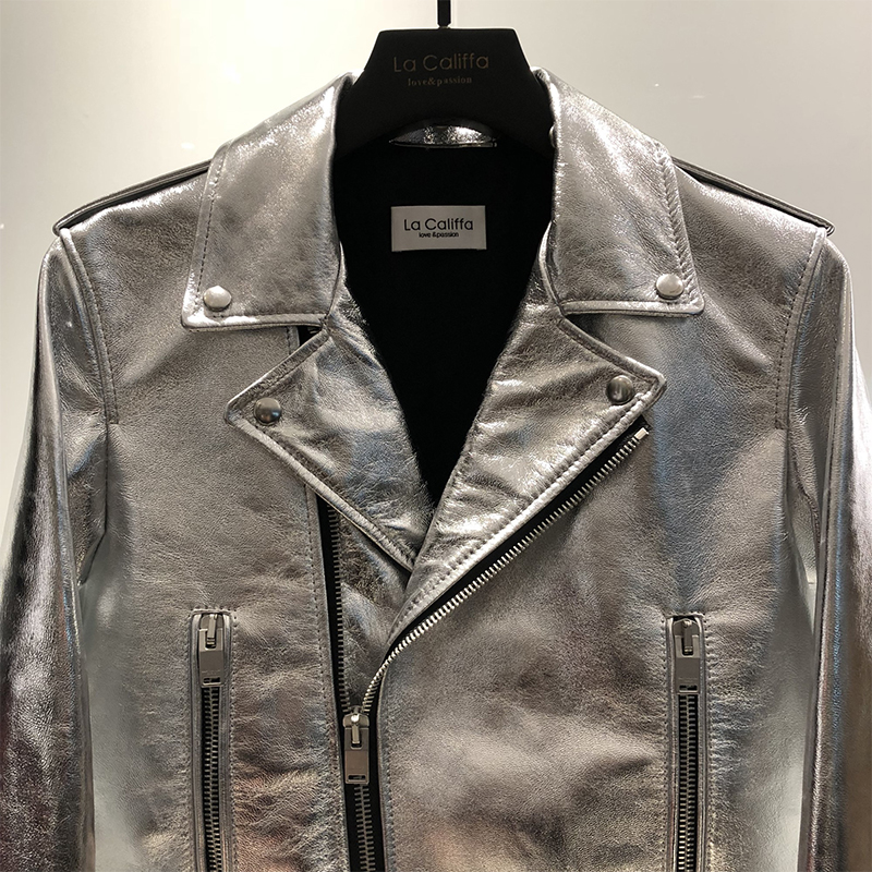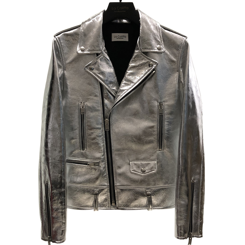 Cloud mud with different SLP wind metal silver texture sheep leather L01 classic locomotive leather jacket men