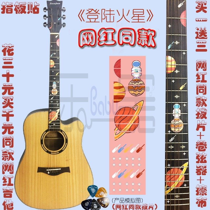 Landing on Mars Guitar Model Fingerboard Sticker Snow Forest Guitar Model Fingerboard Sticker Meow Star Guitar Model Fingerboard Sticker Snowflake and Deer Guitar Model Fingerboard Sticker Space Odyssey Guitar Model Fingerboard Sticker Landing Mars Uke Model Fingerboard Sticker Snow