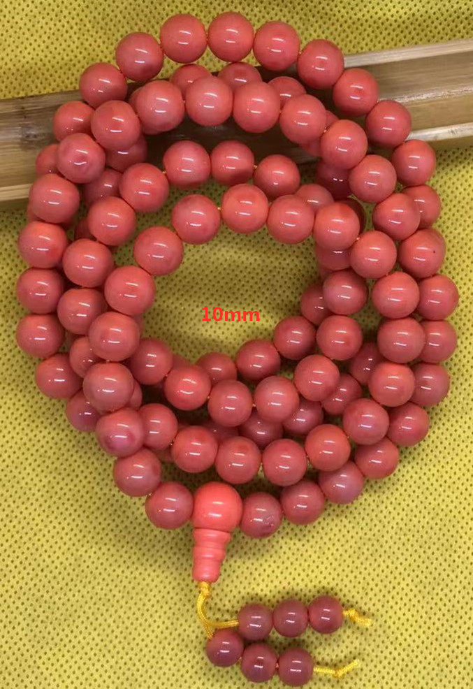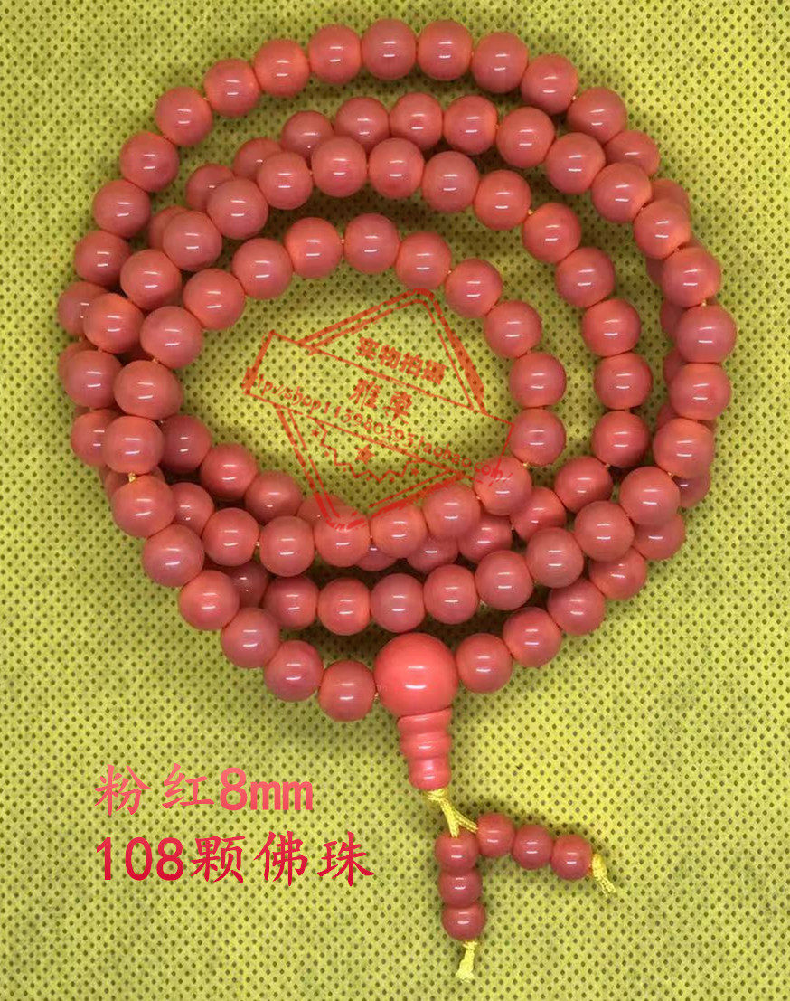 Powder Red Glazed Pearl 108 Pregnant Buddha Pearl 5 Ming Academy Amitaba Amitabi Buddha number of beads Handmade by hand