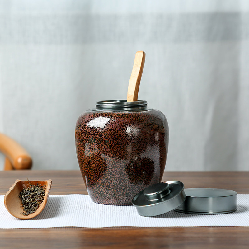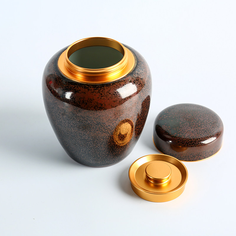 Ceramic Large Household Tea Can Japanese Ceramic Metal Cover Tea Warehouse Without Glue Environmental Protection Can Change Tea Sealing Can