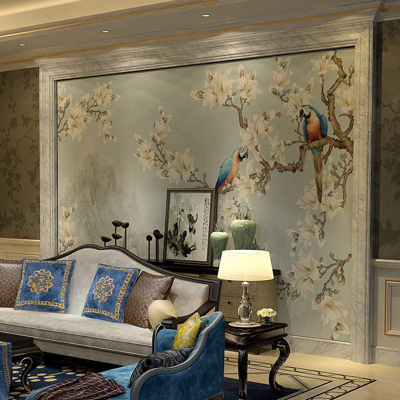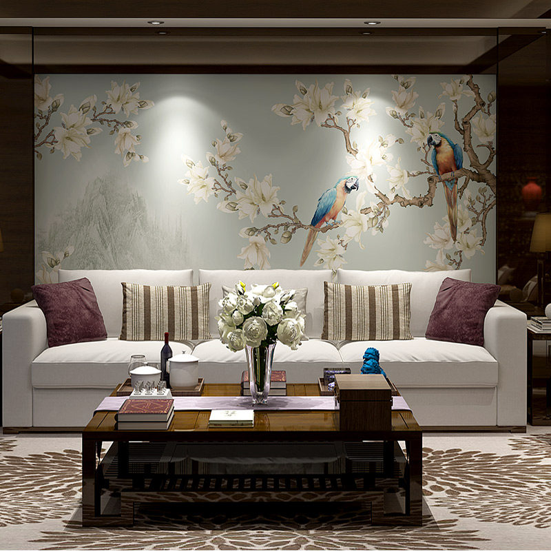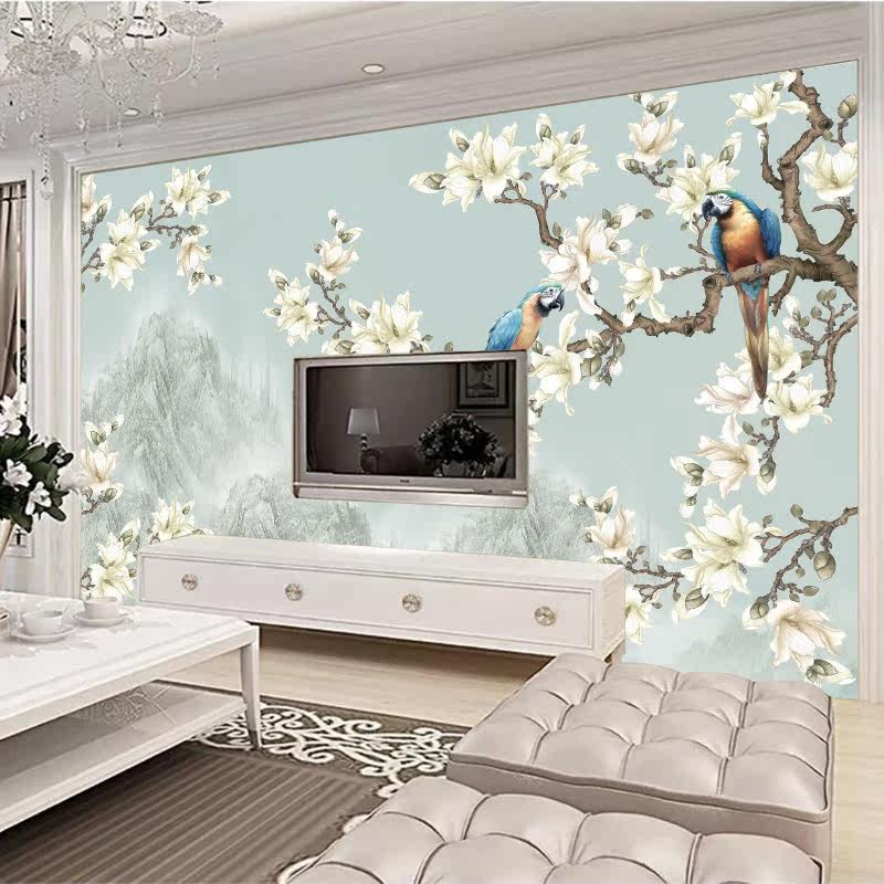 New Chinese style flower and bird film and television wall covering living room sofa background wall wallpaper TV wallpaper seamless non-woven 8d mural