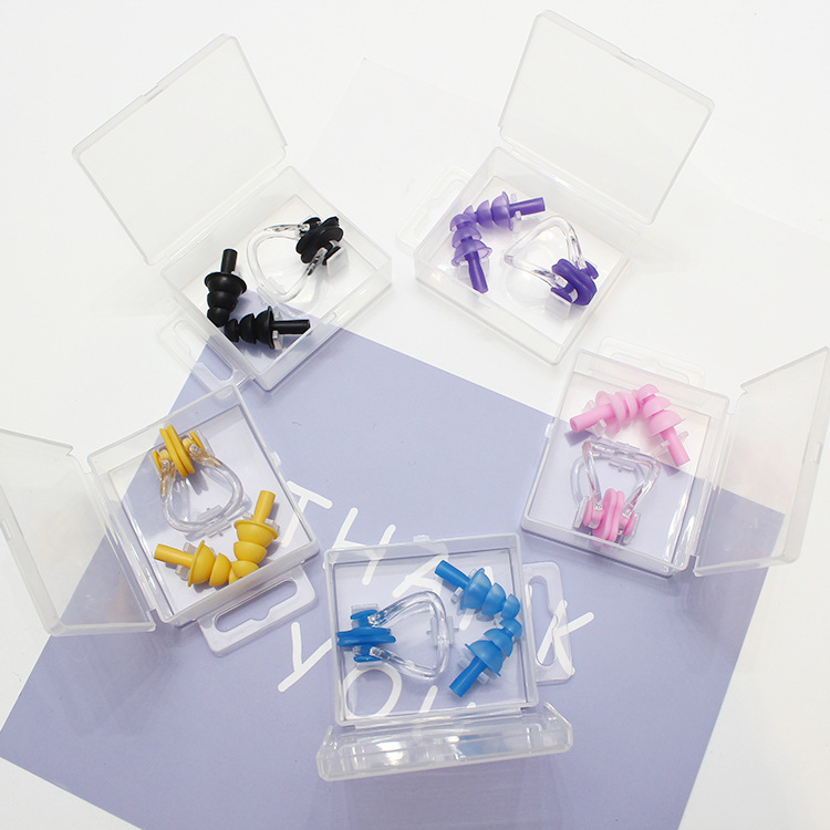 Boxed earplug nose clip Pink boxed earplug nose clip Black boxed earplug nose clip Blue boxed earplug nose clip Yellow boxed earplug nose clip Black with rope boxed earplug nose clip Pink with rope boxed Earplug Nose clip