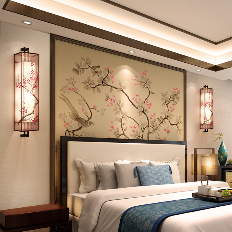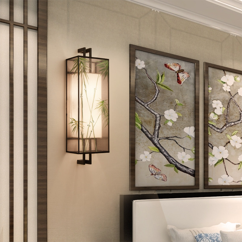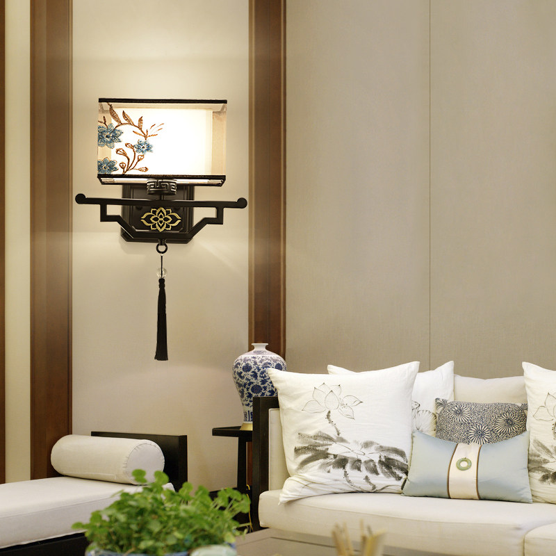 Wall lamp Bedroom bed head lamp modern minimalist living room Creative wall lamp gangway New Chinese wall lamp embroidery headboard lamp