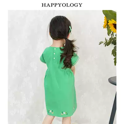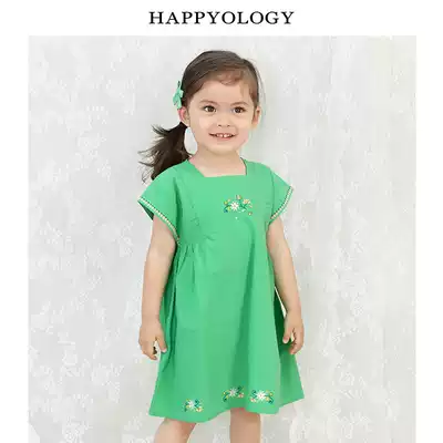 Happyology British girl dress embroidered British avocado green sleeveless girl summer dress