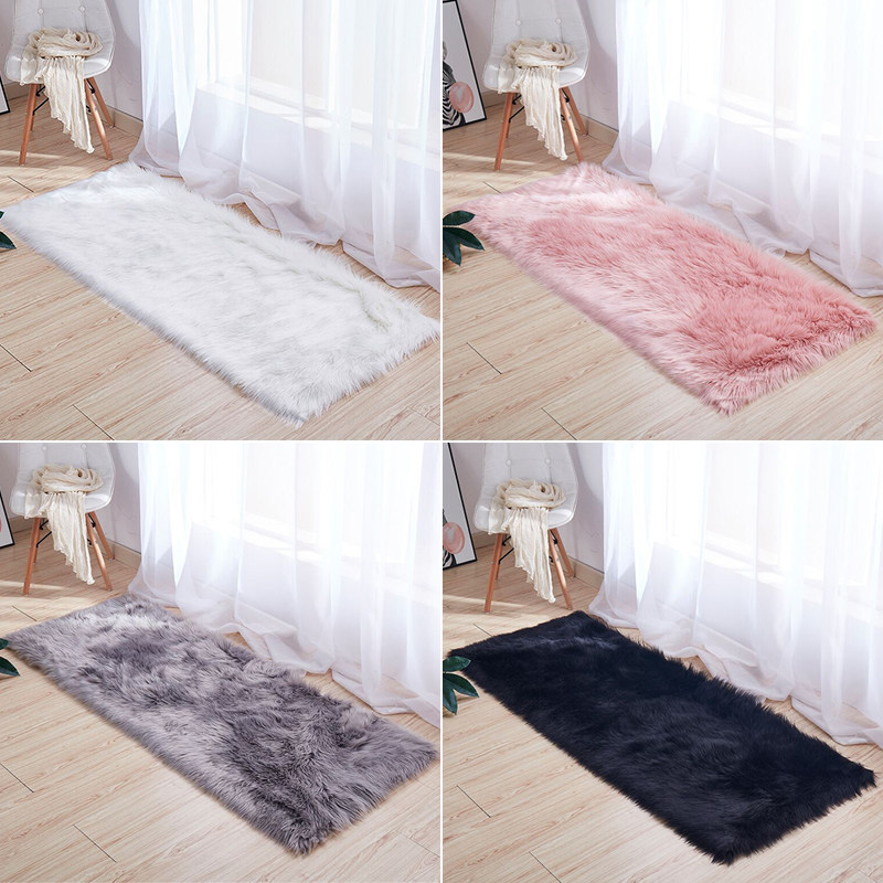 ins wind imitation wool rug Nordic black white long plush bed front bedside blanket net red photo light extravagant cushion
