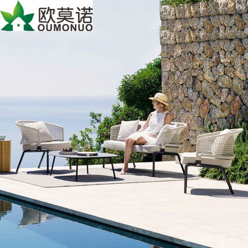 Nordic Outdoor Rattan Choreography Table And Chairs Sofa Hotel Dining Table And Chairs Combined Balcony Patio Sofa Chair Lying Bed Table And Chairs Furniture
